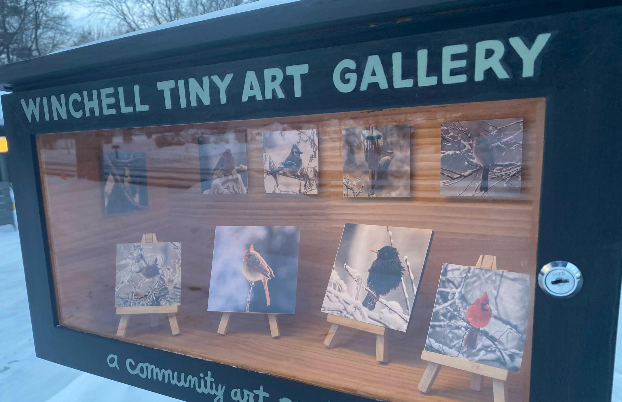 The Winchell Tiny Art Gallery, a public art project located in the Winchell neighborhood in Kalamazoo, creates an intentional and accessible exhibit space for all artists - both professionals and hobbyists.Exhibitions are open to any and all in the Kalamazoo area interested in sharing their tiny artwork. We accept a variety of art including paintings, sketches, felt work, sculpture, poetry, and much more.More information about the genesis of the project can be found here.Interested in exhibiting? Email us: [email protected]